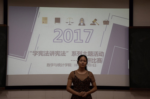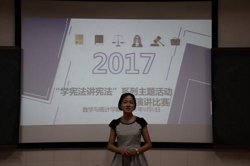 为了增强我院学生的法治观念,使我院学生深入了解宪法,尊崇宪法,弘扬宪法精神,提高对依法治国等理念的认知,9月8日晚19点402永利集团在数学楼420举办了大学生“学宪法,讲宪法”主题演讲比赛。本次比赛由分团委书记刘琴、辅导员周长恩以及分团委学生会各部门部长担任评委,共9名学生作为选手参加了比赛。