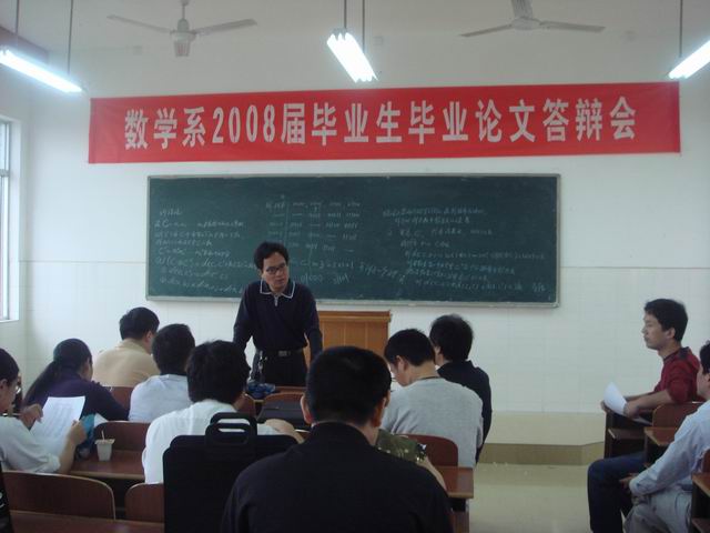 5月18日上午8:30,我系在数学教学楼420召开了首轮“数学系2008届毕业生毕业论文答辩会”。数学系所有专任教师、首轮参加答辩的毕业生以及即将进入大四的05级学生参加了此次答辩会。