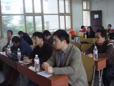 11 月22日 上午8:00,在老校区综合楼206室,数学系开展2009届毕业生汇报课教学比武活动,全系推选14位毕业生参加了比武活动,本次比武活动的评委由数学系系主任罗李平教授、系党总支书记周炎林、系副主任杨柳、阳志锋、高正晖、周勇等老师组成。本次比武活动由数学系副主任杨柳主持。