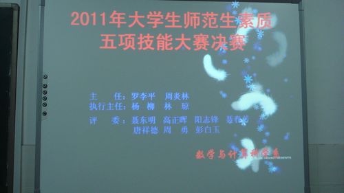 3 月20日上午,数学与计算科学系师范素质五项技能大赛决赛在数学楼309室举行。系党总支书记周炎林、系主任罗李平教授、系副书记林琼、系副主任杨柳以及系六位老师莅临此次比赛并担任评委。来自数学与计算科学系的13位2008级学生参加了此次比赛。