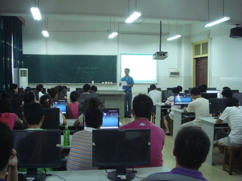 (动员会现场) 8月1日上午,我系在数学楼309室召开参加全国大学生数学建模竞赛培训动员大会,系党总支书记周炎林、系主任罗李平教授、系副主任杨柳、系副书记林琼以及10位指导老师和36位参赛选手(包括南岳学院6名参赛选手)参加了本次会议。动员大会由系副主任杨柳主持。 会议上,罗李平教授首先作了进行数学建模竞赛的意义和需要注意的问题的报告。接着,周炎林书记作动员报告,提出此次培训的目标和希望。林琼副书记特别强调学生在校培训期间的安全问题。最后系副主任杨柳任对此次竞赛培训作了具体的工作安排。