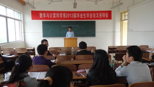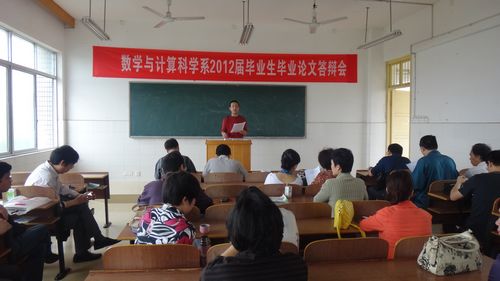 数学与计算科学系 2012届毕业生毕业论文答辩会于4月29日上午8:30,下午3:00在数学教学楼420室举行。数学与计算科学系全体专任教师与2012届毕业生(二本学生和三本学生)参加了此次答辩会,答辩会由数学与计算科学系副主任杨柳主持。