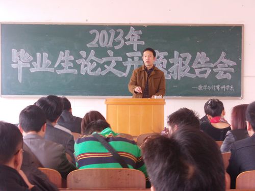 3 月9日上午,数学与计算科学系2013届毕业生毕业论文开题报告会在数学楼420举行。参加本次报告会的有系主任罗李平教授、系总支书记周炎林及指导本届毕业生毕业论文的指导老师和2009级全体毕业生。本次报告会由系副主任杨柳主持。