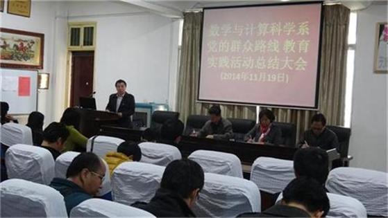 11 月19日下午,数学与计算科学系在数学楼三楼会议室召开了党的群众路线教育实践活动总结大会。全系教工党员、民主人士代表、无党派人士代表、教授和博士代表以及学生党员代表参加了会议。院第二督导小组组长王幼之、成员刘超英到会指导。会议由系主任罗李平主持。