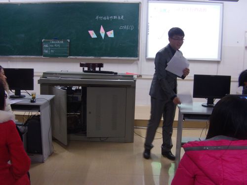 比赛从教师口语、教态、重难点把握、黑板板书等方面对选手进行综合考核。晋级决赛的五位选手绘声绘色地叙说着自己的讲课内容,热情严谨的言语吸引了在场的每一位观众。四号选手金毓在讲课前以小游戏“谁站的快”调动大家的积极性,并以小组竞争抢答得积分卡的方式进行课堂互动,让我们在学习中得到乐趣,在乐趣中学习。三号选手杨央央所选题材“曲线与方程”虽然抽象难懂,但她那收放自如的仪态、优美的板书却为此次比赛增添了不少色彩。其他几位选手的讲课也各有千秋,他们在讲解中教学目的明确、教学思路清晰、语言表达准确精炼、教学仪态端庄大方,给人留下了深刻印象。