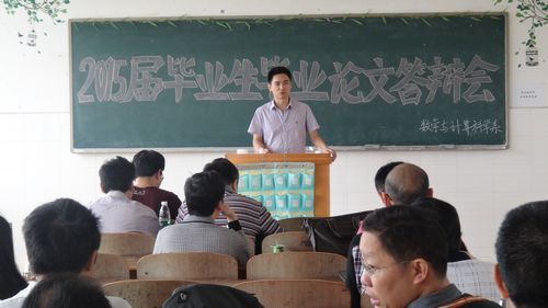 李副院长首先对毕业论文答辩的要求和注意事项进行了强调,然后2015届毕业生按指导老师分为八个小组,分别设在数学楼316-319和418-421教室,主要采取学生上台讲述毕业论文具体内容及所采用的方式方法、老师公开提问的形式在各个小教室进行。各答辩小组老师通过学生讲述和老师提问两个环节,详细了解毕业生所写论文的主要研究内容和创新之处,并以此为依据判定毕业论文答辩是否通过。