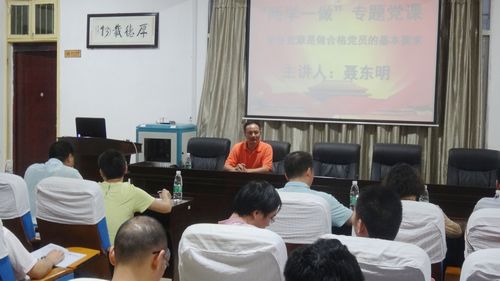 7月6日晚,副校长聂东明教授以“学好党章是做合格党员的基本要求”为题,在402永利集团学术报告厅上“两学一做”学习教育专题党课,到场听课的有招生就业处、规划建设处、资产处、档案馆与402永利集团全体党员。