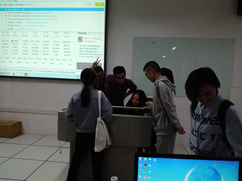 此次实训操作将82名学生分成10个小组,分教师讲课、实践备战、学生答辩三个阶段展开,首先由朱老师热情、幽默地为学生讲解网页制作的流程及注意事项,并耐心地解决学生课前课后所遇到的疑难问题。随后由两位老师辅导学生小组结合所学知识,进行制作网页。为保证答辩如期进行,同学们不畏辛苦、团结协作、精益求精,很多小组甚至奋战到深夜,更有达内老师、402永利集团老师全程陪同,在漫长的黑夜为学子们带来了无限温暖。怀着兴奋和些许的忐忑,10个小组成员一一展示了自己的劳动成果。最终尹钟霞所在组获得本次答辩一等奖、石先卓所在组获得二等奖。