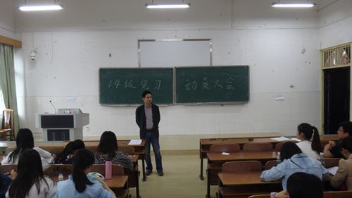 会上,李龙副院长首先作动员讲话。他就本周见习的目的和意义、见习单位、听课时间、指导老师的分配四个方面进行详细说明,此次见习主要在衡阳市三中、船山中学、成章中学展开,每班配备一名带队老师。紧接着,李院长又强调了见习中的注意事项,尤其是离校、返校途中的安全。并对在座同学提出了三点诚恳的要求:做到课前备课有把握、课上认真做记录、课后总结常反思。大会最后,聂老师再次强调了见习中的安全问题。
