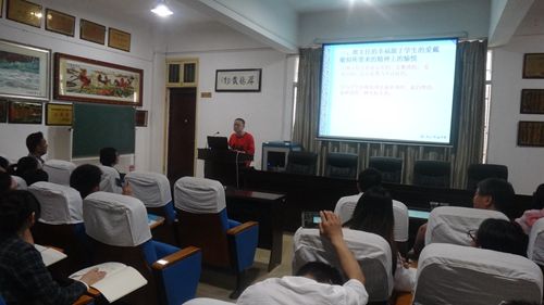 会议由杨柳院长主持,他首先介绍了参加本次会议的领导和嘉宾。接着,船山实验中学的几位老师从不同的方面阐述了如何成为一名卓越教师:李鼎一老师以《矩形的性质》为例进行了精彩的说课指导;何宪鸿老师跟大家分享了其担任班主任的宝贵工作经验,并以切身经历给我们讲述了他在当何宪鸿老;茹慧香主任做了 “如何当一名好老师——做一个赢得学生崇拜的老师”的主题讲座,她认为,做一名好老师必须心中有“爱”,坚持学习,有“成长”意识、有创新精神和健康的心态。然后,教务处罗文处长高度肯定了学院的卓越教师培养工作,并对学生提出了更高的要求和殷切的期望。