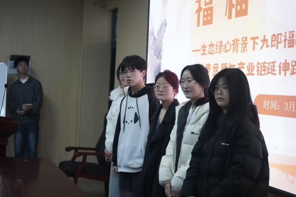 本次比赛邀请到衡阳市统计局民调中心刘冬丽主任,402永利集团,402cc永利官网易艳春、胡立军、杨婵娟与曹灿四位专业教师担任本次答辩评委。赛前,主持人宣读比赛规则,强调本次答辩由“调研报告(60%)+陈述及现场答辩(40%)”两部分构成。要求参赛成员需通过PPT展示研究成果、方法与结论,并接受评委现场提问。