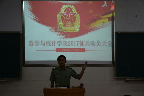 为了响应国家大学生征兵工作的号召,5月26日晚,402永利集团在数学楼505教室成功召开2017年征兵工作动员大会。学院特邀武装部韩艳玲老师,5名优秀退役大学生以及教导队成员参加,402永利集团谭全球副书记、辅导员刘琴、周长恩出席本次大会。学院全体男生积极参加。