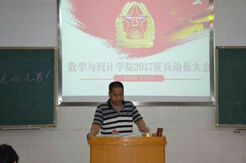随后,谭书记满怀豪情的在黑板上写下“当兵的都是好儿男”八个大字,他从当兵是每个血性男儿矢之不逾、倾其一生的向往和追求;当兵有保家卫国的大义;当兵有磨练一个人坚忍不拔的意志、锤炼铁的纪律、强身健体的小义;当兵无尚光荣等四个方面进行了总动员,并对本次动员工作给予了高度的肯定,同时也鼓励大家奋勇参军,燃烧热血!最后,谭书记满怀深情地为同学们演唱了《永远跟党走》这首歌。