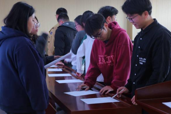 随后,趣味游园会正式开启。静谧的九章楼瞬间充满欢声笑语,视觉记忆、数迷揭秘、谁是卧底、逢七必胜、尼姆博弈、数字传声筒六大趣味点位前,同学们踊跃参与、热情高涨。有人为解开数迷欢呼喝彩,有人在数字传声筒中妙趣横生,小组围坐切磋尼姆博弈、共商策略,现场处处洋溢着探索乐趣与青春活力。