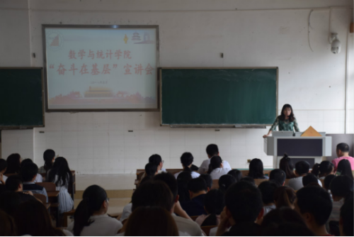 5月5日下午三点,402永利集团于数学楼505教室举办2018届毕业生“奋斗在基层”宣讲会。会议由辅导员刘琴老师主持,院党总支书记邹梅山、辅导员兼就业专干刘志刚出席了此次会议,2018届全体毕业生参加了此次会议。