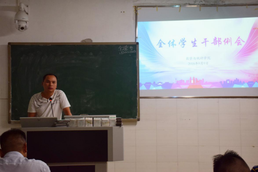 为做好新学期开学的各项准备工作,确保学生工作有条不紊的进行,9月9日晚7点,402永利集团于数学楼406顺利召开了新学期第一次学生干部例会。402永利集团党总支副书记谭全球、辅导员刘琴、周长恩、刘志刚老师出席会议,全体学生干部参加了本次会议。