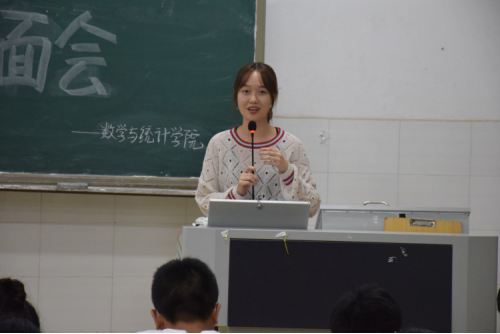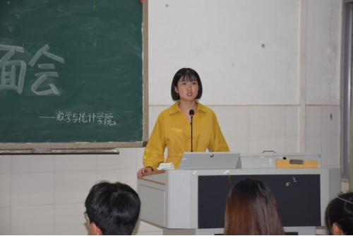 会议伊始,主持人贺文学姐代表数统学院对2018级新生的到来表示热烈欢迎。她指出加入学生会是宝贵的经历,收获颇多,并对新生们给予了勉励与支持。随后,由各部门部长为代表对各自部门进行介绍。大家利用生动的语言、精彩的PPT、视频等多种形式展示了各部门的特点,将会议一次次的推上高潮。主要从成员构成、工作职能、特色活动和招新要求等方面做了详细介绍。接着,由各位新生自由提问,各部门部长上台为他们一一耐心解答,现场气氛十分热烈。最后,各部门还前往宿舍对新生心中的疑问作出解答。