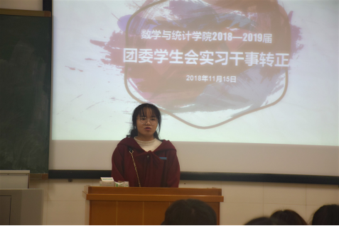 11月15日晚7点,402永利集团2018—2019届团委学生会实习干事转正大会于数学楼521、522教室顺利举行。团委学生会各部门部长、副部长以及全体实习干事出席此次大会。