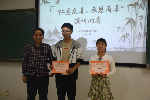 此次比赛以选手演讲内容、语言表达、形象风度、演讲效果为主要审评标准。比赛中,选手们准备充分,仪态大方,通过名人事迹、身边实例、自身体验从不同方面、不同层次阐述了自己对“仁慈友善·感恩尚善”的见解,并向大家畅谈对于感恩与善的切身体会,以质朴的语言、真挚的情感抒发了内心对于真善美的推崇与向往,引起了在场观众的强烈共鸣,使现场掌声不断。整场比赛,选手们选题新颖、联系实际,各具特色。经过激烈角逐,最终1804班彭丽娟、1801班彭俊清荣获一等奖。