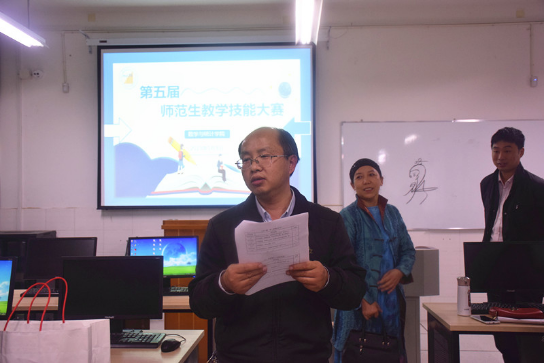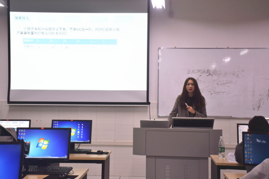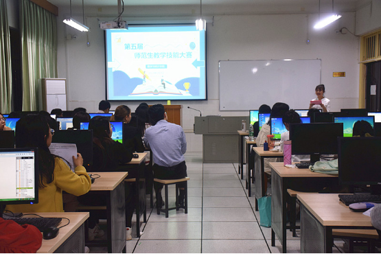 本次比赛共有22名选手参赛,在308、309、310,三个机房同时进行。大赛主要从多媒体课件制作、书写技能、片段教学、演讲、才艺展示五个方面考察学生的师范素质和技能水平。在教育问答环节中,选手们通过换位思考、与学生沟通、提出问题等多种方式回答了在课堂教学、班级管理、师生沟通等方面可能出现的复杂问题。接下来的模拟授课中,选手们有的通过复习旧知进而引入教学;有的层层抛出问题让学生产生思考;有的让学生自己动手画图,直观地了解教学内容。参赛选手授课内容准备充分,思路明确清晰,仪态大方,给现场的师生带来了精彩的课堂片段,展现出深厚的知识功底及专业的教学技能。