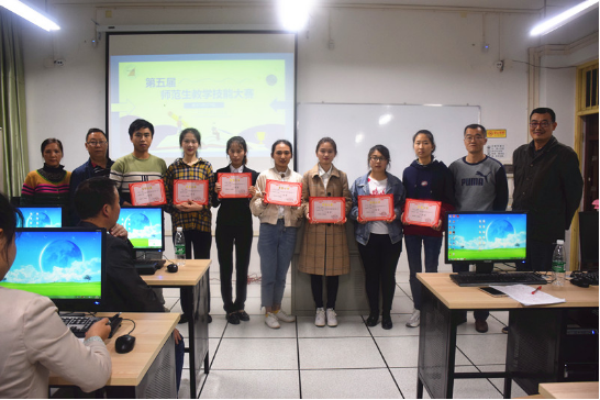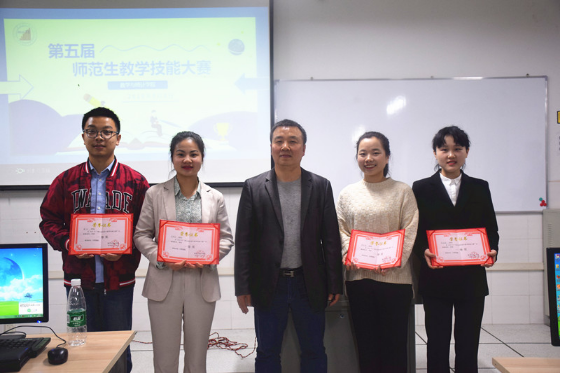 各参赛选手结束授课后,现场评委老师进行了详细点评,针对选手具体表现总结出不足之处,指出选手在引入新知识、课堂提问方式、选题确认、重难点分析等方面中存在的不足,并提出了中肯的建议。本次大赛经过激烈角逐,最终易佳慧等8名同学荣获本次大赛一等奖,朱勇等14名同学荣获本次大赛二等奖。