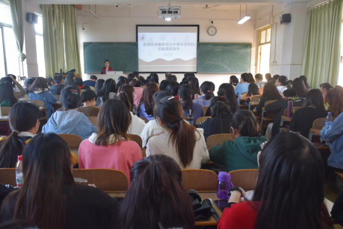 讲座中,李浏兰院长首先对莅临402永利集团的指导老师们表示热烈欢迎。尔后,市九中党委书记王赛芬老师上台发言,她向大家介绍了九中悠久的办学历史以及在新机遇、新发展下学校所展现出的生机活力,并结合亲身经历和所感所悟激励同学们要不负青春韶华,勇做追梦人。
