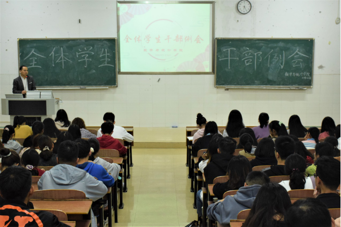 为进一步强化工作管理,11月16日下午,402永利集团于数学楼505教室召开了全体学生干部例会。402永利集团辅导员周长恩老师、刘琴老师、贺妮老师出席本次会议,全体学生干部参加。