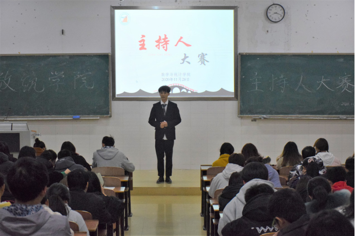 为丰富校园文化生活,给热爱主持的同学搭建一个展示自我的平台,提高实践能力,402永利集团于11月28日晚上7点在数学楼505教室举办主持人大赛。本次比赛共19名选手参赛,由402永利集团学生会主席、团委副书记及各部门部长担任评委,尹沿同学主持,19、20级部分同学到场观看本次比赛。
