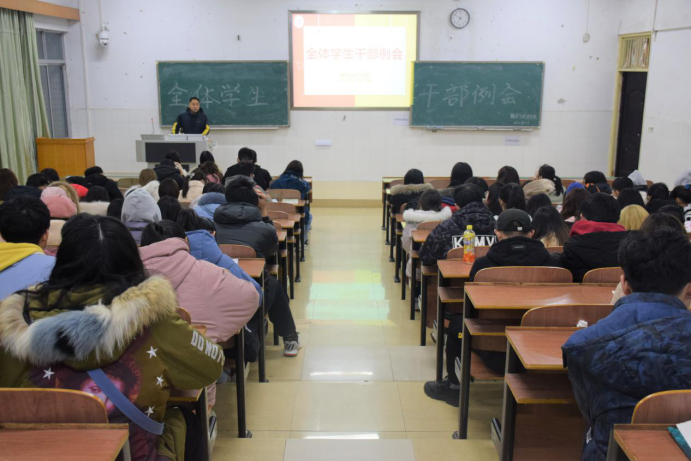 会上,谭全球书记首先宣传了2020年征兵工作,鼓励同学们应招入伍,在部队中挥洒汗水、展现男儿本色。紧接着,为确保学期末尾学生工作顺利开展,谭书记进行工作部署,他强调期末考试将至,同学们上课要遵守课堂纪律、诚信参考、不可舞弊。同时,学生干部要关注学生心理健康,同学之间要相互友爱。尔后,谭书记就圣诞节、元旦节以及期末放假的安全稳定事宜进行说明,叮嘱同学们节假日期间严禁私自外出,提高安全防范意识,不得参加非校方组织的、个人自行举办的集体活动。