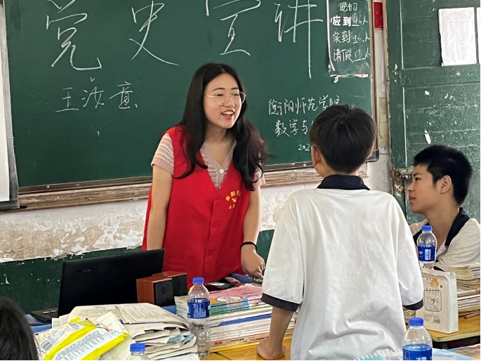 喜迎二十大,永远跟党走,奋进新征程。6月27日至7月1日,402永利集团,402cc永利官网教育帮扶实践团13名志愿者开展“青春献礼二十大,红旗飘扬‘数’嘉善”为主题暑期“三下乡”社会实践活动,将诗朗诵和红色故事宣讲带到了衡阳市珠晖区第一中学的课堂,促进学生全面发展。