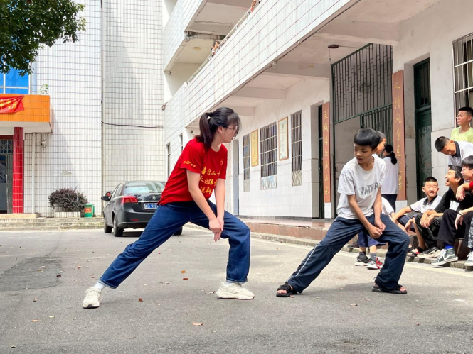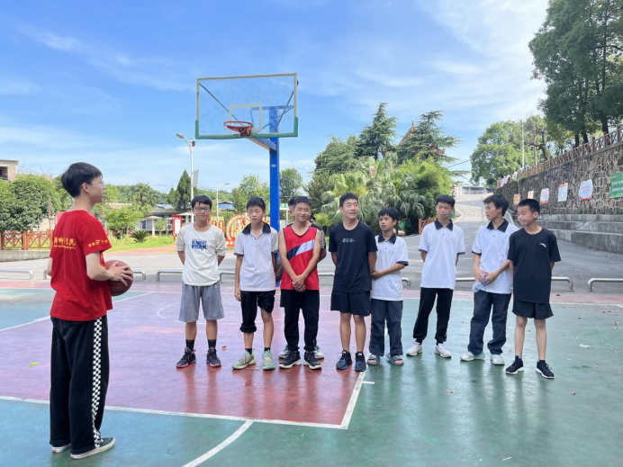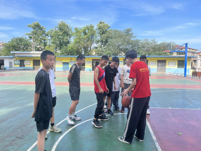 毛泽东曾讲:“身体是革命的本钱”,坚持体育锻炼,不仅能增进健康、预防疾病,更能增强体质,提高学生身体素质。为响应团中央号召,2022年6月26日至7月1日,402永利集团,402cc永利官网“‘童’心燃梦”教育帮扶实践团13名志愿者奔赴衡阳市珠晖区第一中学开展“青春献礼二十大,红旗飘扬数‘嘉’善”为主题暑期“三下乡”社会实践活动,实践团在此次实践活动过程中,开展跑操、匕首操、篮球等多种体育锻炼项目教学,让学生在学习之余感受运动的魅力,合理排解情绪以及学习压力,释放压力的同时强健体魄,提高身体素质。