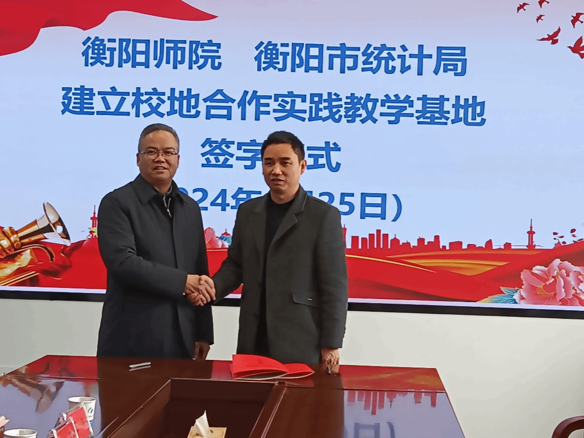 为全面推进实践教学工作,提高实践教学质量,培养学生的科技创新精神、创业能力和实践能力,提高学校统计学专业人才培养质量,1月25日下午,我院与衡阳市统计局举行校地合作共建签约仪式。