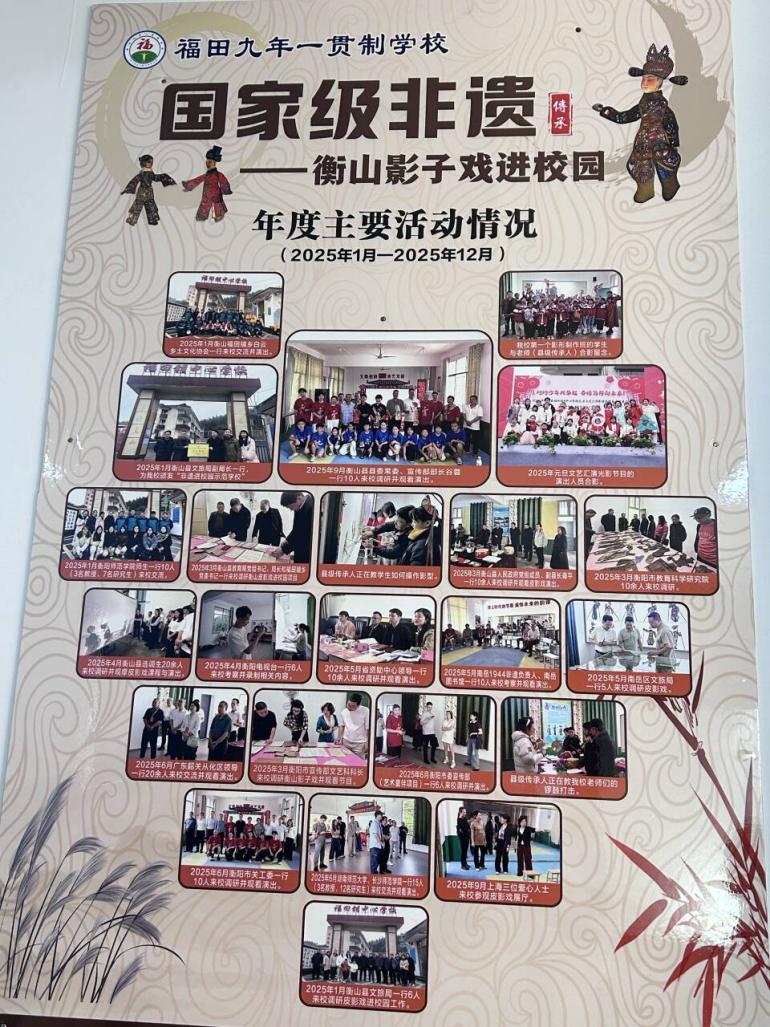 本次调研的是福田铺乡中心学校、皮影戏非遗传承人和衡山县文化艺术中心。福田铺乡中心学校自2024年起开展衡山皮影戏“非遗进校园”活动,并建有衡山皮影戏文化艺术展厅。周小平校长表示通过多年的教学研究已探索出 “传承人-教师-学生”新型非遗传承模式。