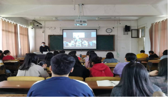 李浏兰院长首先对校外专家的到来表示了热烈欢迎,并为学生详细介绍了专家们的情况。在一片热烈的掌声中,张艳辉老师开始为同学们分享经验。她向同学们展示了成章中学金牌数学教师刘金花老师的一堂关于“正方形展开图的探究”的示范课,课堂中刘老师生动有趣的课堂导入、积极良好的课堂氛围与恰到好处的课堂节奏给同学们留下了深刻的印象,同学们感到受益匪浅。张艳辉老师在此基础之上结合课程标准从多方面点评了示范课,并对同学们的疑问进行了认真解答。