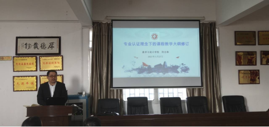1127日上午,402永利集团组织召开了专业认证理念下的课程教学大纲修订研讨会会议由副院长阳志锋主持数学系全体教师参会。