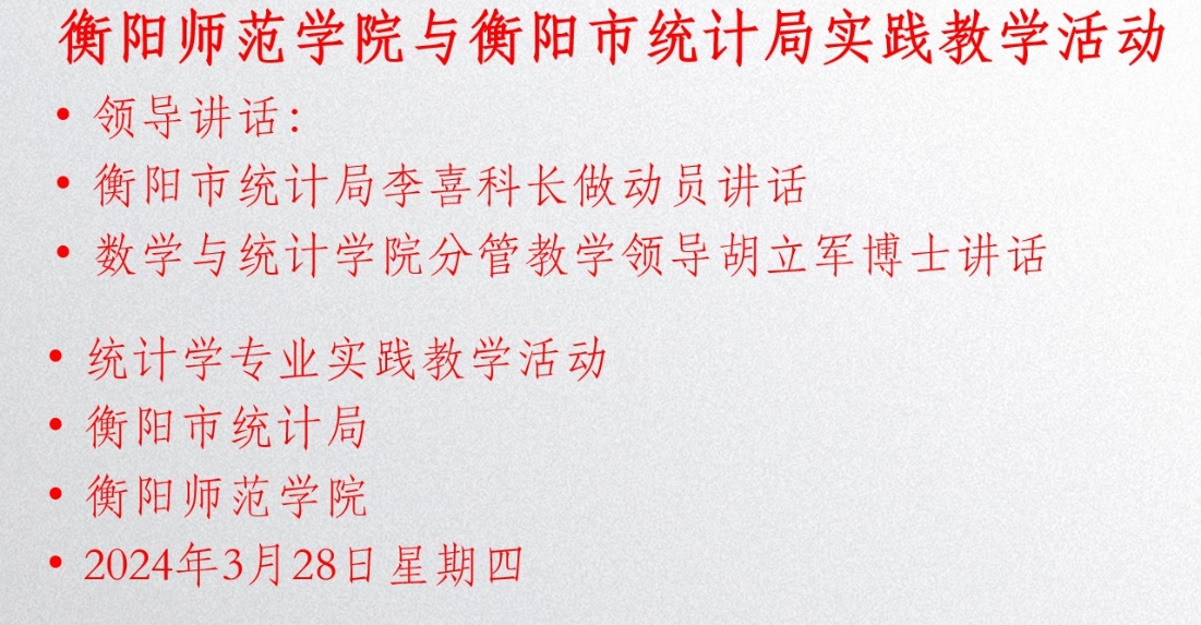 为了鼓励更多同学了解并参与全国大学生统计建模大赛,2024年3月28日19:30—21:30在理科1号楼303实验室召开统计建模大赛动员大会。参加本次经验分享大会的领导和老师分别是402永利集团分管教学工作的领导胡立军博士,衡阳市统计局人事科李喜科长,衡阳市统计局能源科科长魏荣丽、衡阳市统计局普查中心副主任肖艳红和周凡炜,湖南工学院应用统计教研室主任刘娟。参加2024年全国大学生统计建模比赛的全体同学参加了此次经验分享大会。通过本次经验分享大会,同学们对统计建模大赛充满了动力和热情,给同学们无限的力量和鼓舞。本次经验分享大会线上线下同步进行。