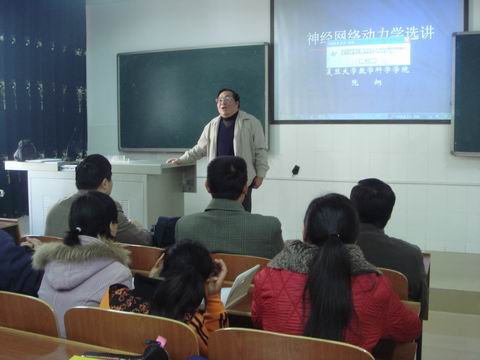 25日上午10:00,阮炯教授以《神经网络动力学模型和问题》为题开展讲座。阮教授首先通过个人的科研经历来启发和激励我系老师、学生要善于发现新问题;善于把数学应用到实际生活和其他学科中去。接着,阮教授重点介绍了这种抽象的数学模型的概念及其在保密通讯、医学、股市等生产生活中的应用。