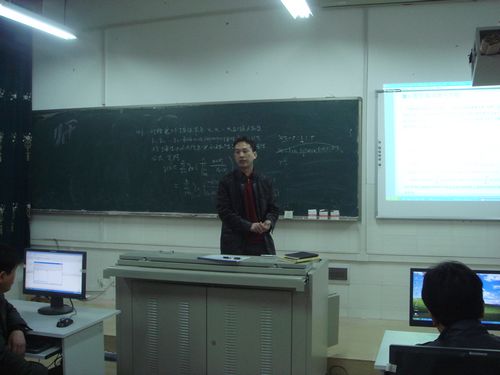 (报告会现场) 3月30日下午3:40,在我系多媒体教室系副主任杨柳作《分数阶微分方程的非局部边值问题》的学术讲座。我系所有专任教师参加了此次报告会。报告会由系主任罗李平教授主持。 杨柳首先简单介绍了分数阶微分方程边值问题的研究现状。接着,他介绍了一类带脉冲的分数阶微分方程边问题解的存在性的新结果。 最后,报告会在热烈的鼓掌声中结束。