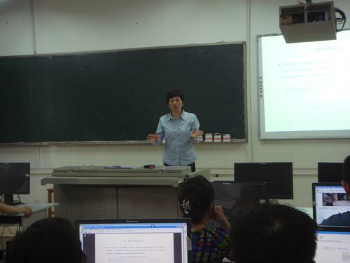 该报告讨论了具有面板计数数据的计数过程的多样本非参数比较问题(当考虑递归事件时,这类问题经常出现。例如,这类面板计数数据经常在医学上的穷追研究和可靠性实验中出现)。赵兴球博士为了讨论该问题,在计数过程的可估计均值函数的增加的比率间构造了两种基于累积加权差的非参数检验统计。其中,估计均值函数是用非参数极大似然法而不是用非参数极大伪似然法。同时,她还提出了一种新的可以允许不同的观察过程的非参数检验程序,通过蒙特卡洛模拟法推导了已提出的统计的渐近分布和验证了有限样本的性质。模拟结果表明提出的程序十分有效且比已有的检验程序更强大。关于这一点,赵兴球博士举了两个例子进行说明。报告最后,她就此报告相关问题跟数学与计算科学系部分老师进行了深入讨论。