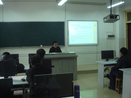 12 月14日下午3:00在数学楼多媒体教室,我系罗振国博士作了《具有脉冲干扰的几类人口对数模型正周期解的存在性与全局吸引性》的学术报告,我系部分教师参加了本次报告会。报告会系主任罗李平教授主持。