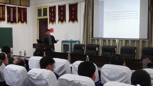 开幕式后是研讨会学术报告,共进行了5场学术报告:中科院数学与系统科学研究院孙聪博士作了题为“Multi-stream algorithm for MIMO AF relay networks”的报告,中科院数学与系统科学研究院姜波博士作了题为“Stiefel流形上优化问题的一个保约束框架及算法”的报告,长沙理工大学周伟军博士作了题为“On Q-linear convergence of two algorithms for equations”的报告。与会教师和专家学者进行了深入的学术交流的探讨。接着,402永利集团龙祖强博士和周志东博士分别作了“模糊控制器的维度灾难与变论域方法”和“一个小图与路和圈的联图的交叉数”的报告。