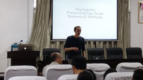 (法国南布列塔尼大学Frénod教授正在作学术报告)