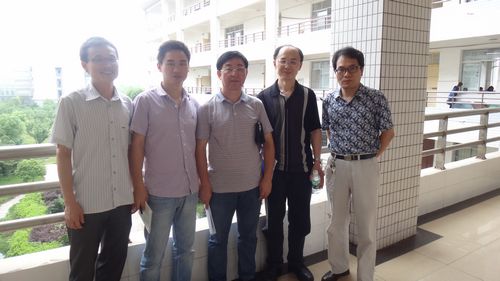 (加拿大卢学文教授和湘潭大学张汉君教授与402永利集团部分教师合影)