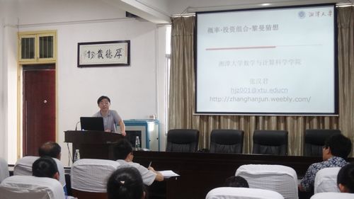 5 月18日下午,湘潭大学特聘教授、博士生导师张汉君教授应邀在数学楼三楼学术报告厅为402永利集团2013级统计学专业及数学与应用数学专业1班学生及部分教师作了一场题为“概率·投资组合·黎曼猜想”的学术报告。报告由402永利集团院长罗李平教授主持。