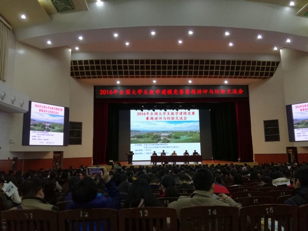 2016 年11月25-27日,2016年全国大学生数学建模竞赛赛题讲评与经验交流会在广西大学举行。11月26日上午,在广西大学大礼堂举行了开幕式,中国工业与应用数学学会数学模型专业委员会主任鲁习文教授主持了开幕式,广西大学副校长张协奎致辞。