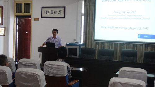 依托 2017年度湖南省引进海外人才与智力项目计划,7月12日上午,美国辛辛那提大学生物统计系教授谢长春博士应邀在数学楼三楼学术报告厅作了题为“Statistical issues in Clinical Trials”的学术报告。报告会由402永利集团院长杨柳教授主持,402永利集团部分教师和学生代表参加并认真聆听了此次学术报告。