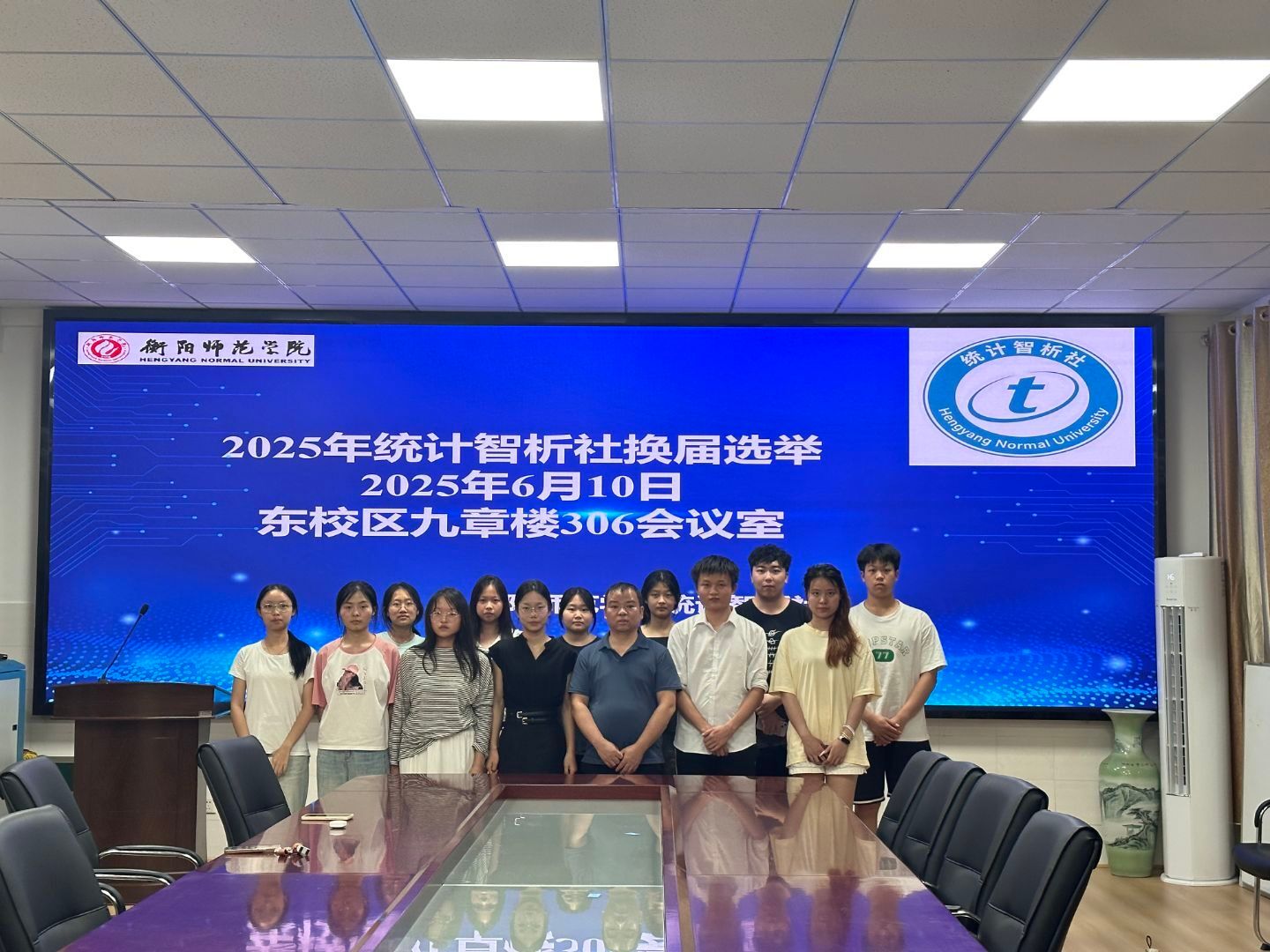2025年6月10日19:30,402永利集团统计智析社在九章楼306会议室举行年度换届选举会议。统计智析社指导老师曹灿博士、首任会长宋一乐、理事会成员和学校监察部门代表共同参加本次会议。会议回顾了社团年度工作成果,选举出新一届会长,并规划了未来发展方向。