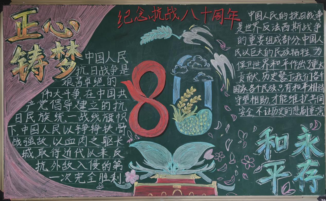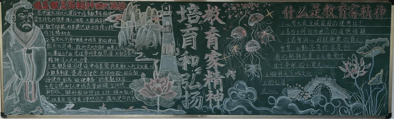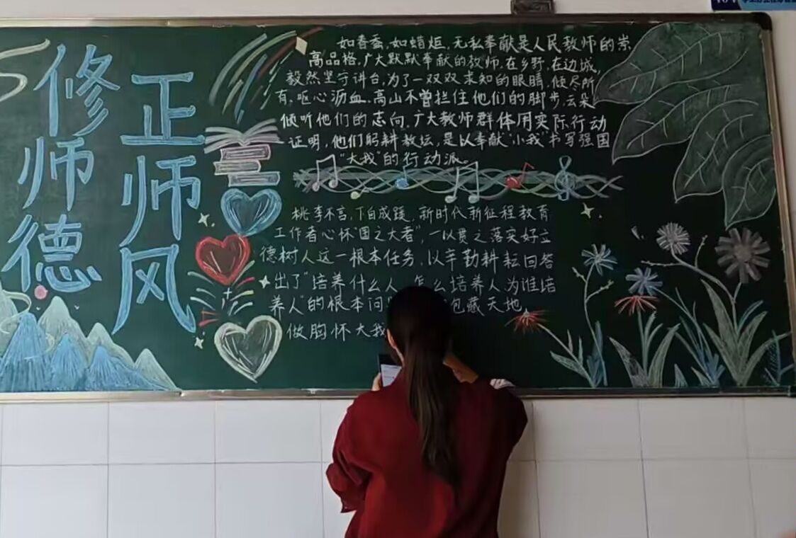 活动自启动便获得各班级热烈响应。各参赛小组围绕抗战胜利80周年、教育家精神、师德师风、廉洁教育等主题展开创作,构思精巧、图文并茂。从10月19日设计稿提交,到10月22日至31日的现场绘制,同学们团结协作、倾注热情,将一块块黑板变为传递思想、弘扬正气的艺术窗口。11月4日,经学院宣传部认真评审,九组优秀作品脱颖而出。最终,2402班徐滨滨组和2406班唐正融组荣获一等奖;2402班蒋静玉组、2405班刘志萍组、2504班王诗琪组获二等奖;2406班陈玲玲组、2505班万璐组、2503班易岱霞组、2506班陈咏璐组获三等奖。