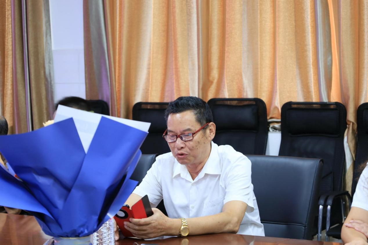 紧接着,彭白玉老师满含激动与感恩之情,分享起自己的心声。他感恩组织关怀,回望数十载教育岁月,感慨时代赋予这代人幸运成长的机遇。谈及退休生活,他表示将以平和心态追求精神富足,愿化作微光温暖社会;同时寄语青年教师坚守教育初心,鼓励同学们踔厉奋发,最后真诚祝愿在场众人健康幸福、平安喜乐。