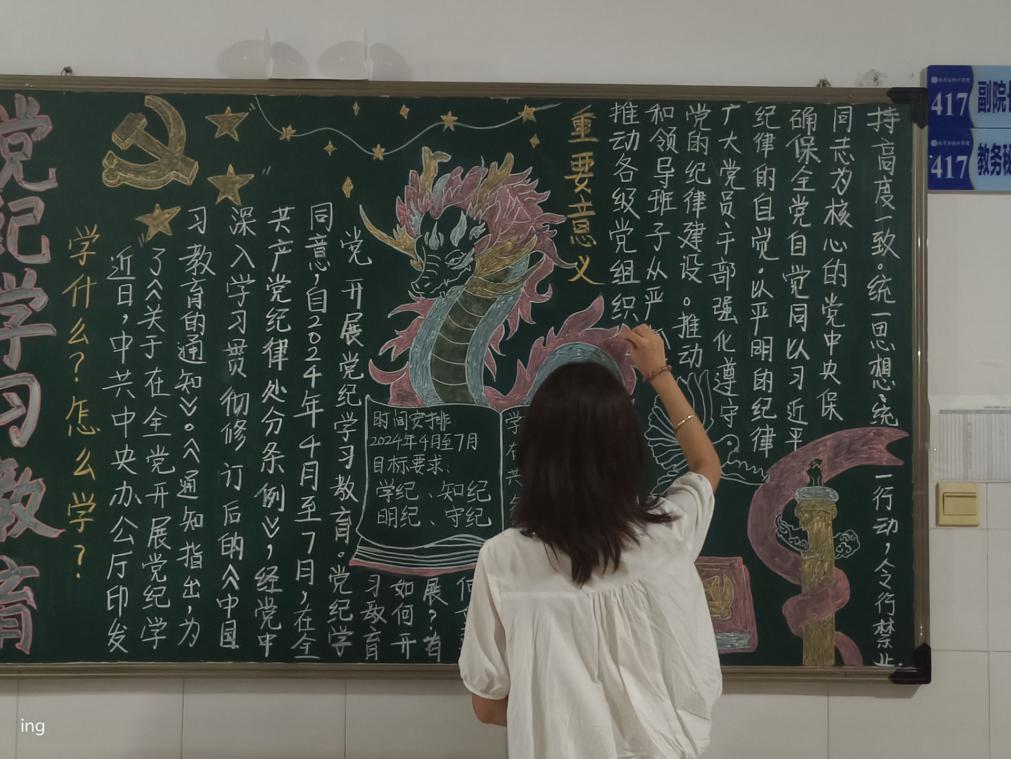 活动自启动以来,全 院 各班级积极响应,踊跃参与。同学们围绕“强国征程,青春担当”这一主题,精心策划、认真准备,通过黑板报这一传统而富有创意的形式,将国家大事和社会热点融入其中,展现出了新时代青年的风采和担当。在为期一周的制作过程中,各班级同学充分发挥了团队协作精神,分工明确、密切配合,共同完成了黑板报的制作任务。他们用心挑选内容,精心设计版面,用心绘制图案,用心书写文字,力求将每一块黑板报都打造成为一件艺术品。